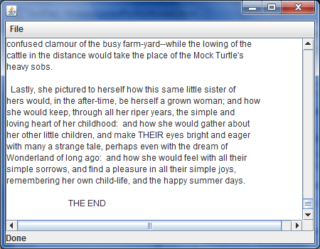 Programmet gir brukeren anledning til å velge en tekstfil som programmet skal vise linje for linje i