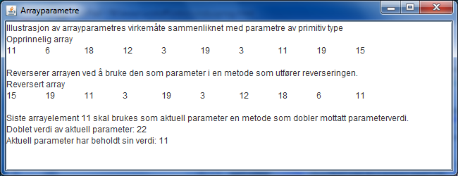 vindusbasert program. Programmet demonstrerte bruk av arrayer som metodeparametre.